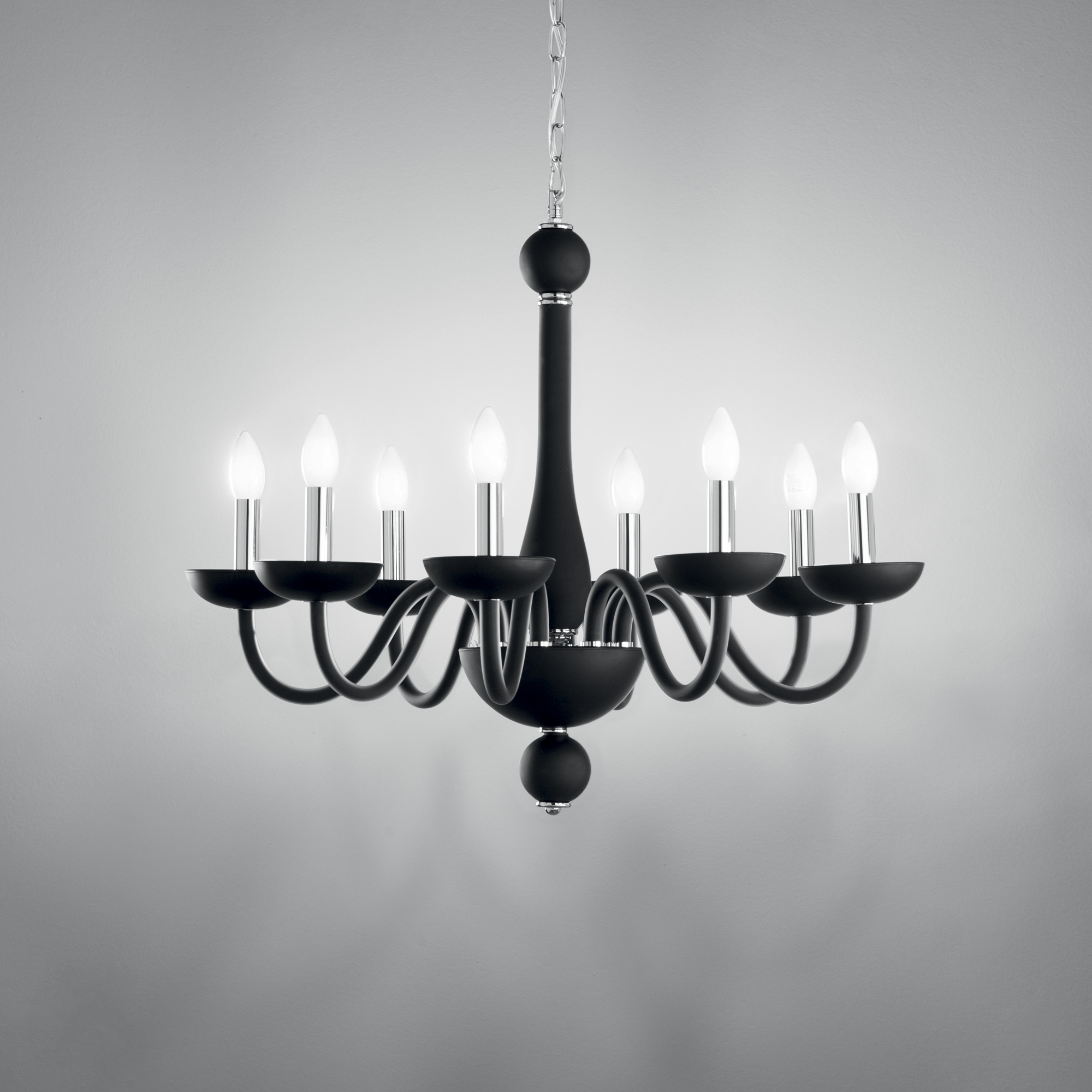 LAMPADARIO ALFIERE NERO/CROMO 8XE14 74X178CM - Luce Ambiente e Design