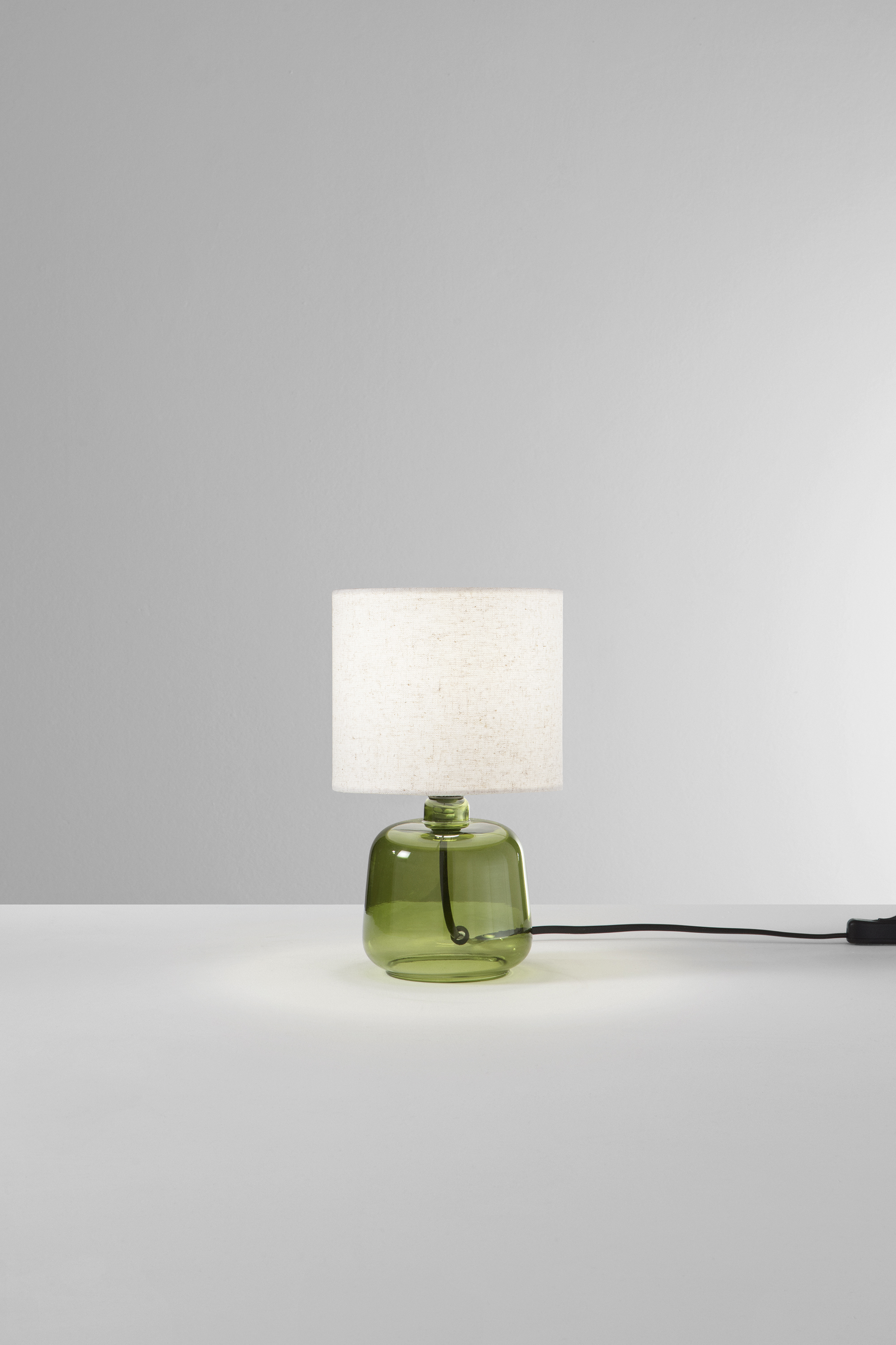LUME EMERALD VERDE IN VETRO CON PARALUME IN TESSUTO 1XE14 STRUTTURA D15X25CM PARALUME D15X16CM - Luce Ambiente e Design