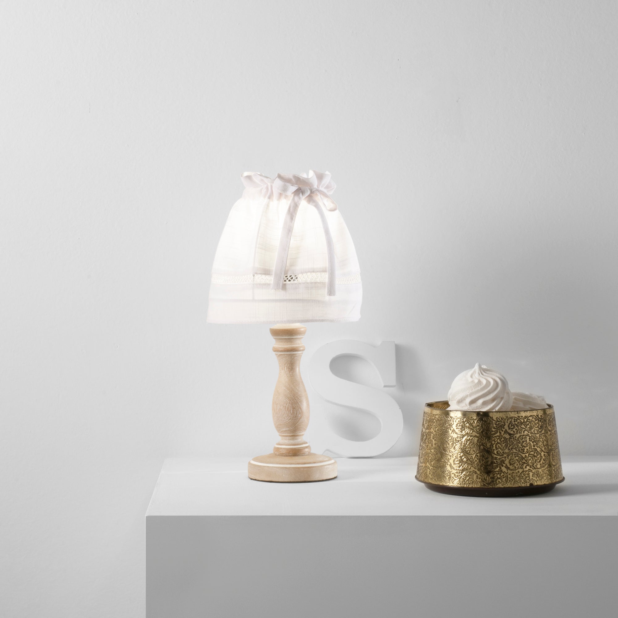 LUME LULLABY BIANCO CON LEGNO 1XE14 18X34CM - Luce Ambiente e Design